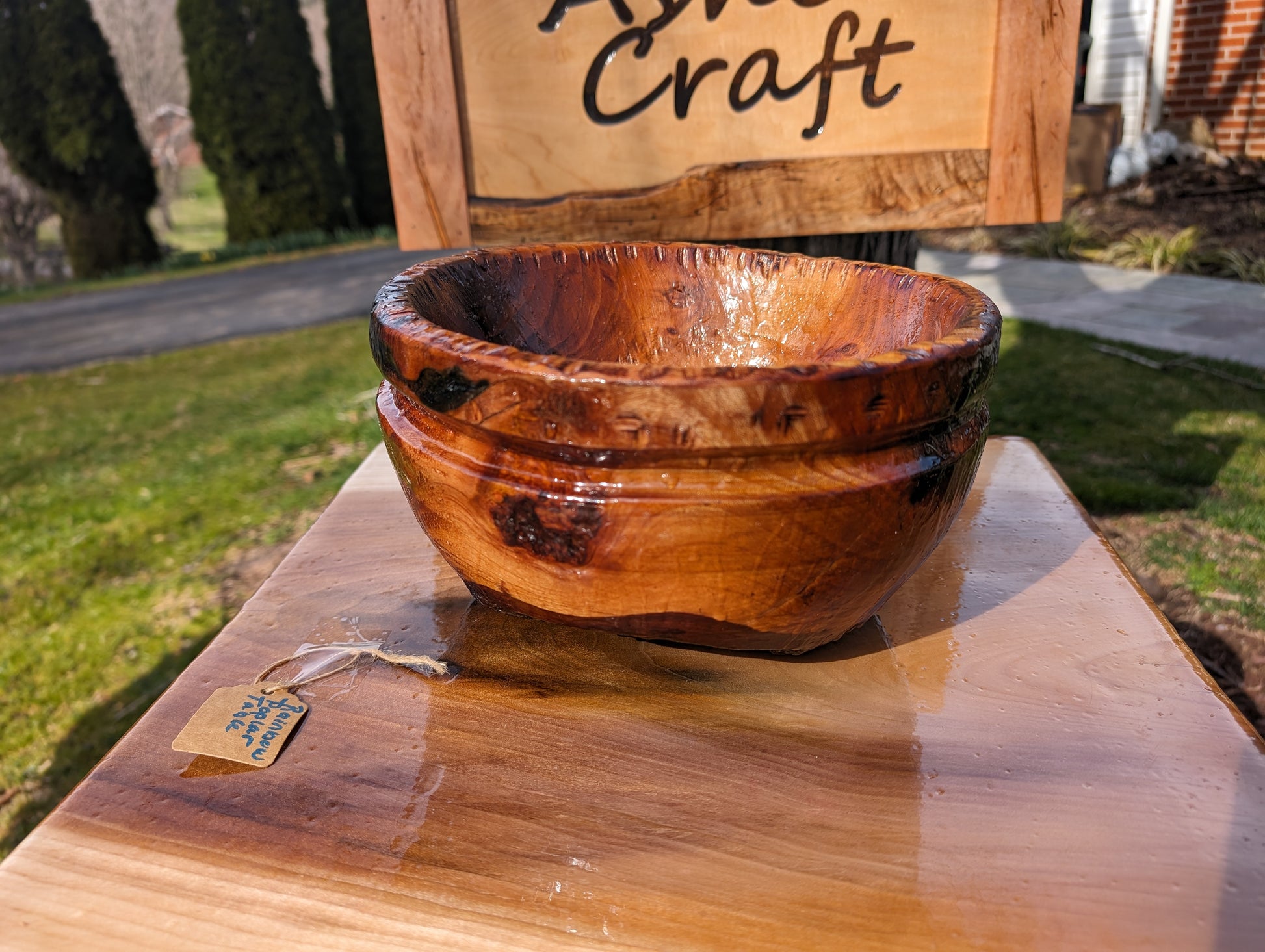 "Native", Wooden Bowl Hand Carved from Service Berry Tree